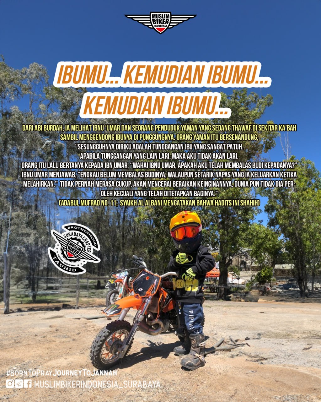 Muslim Biker Indonesia (MBI) adalah wadah biker untuk belajar tentang keislaman, bagaimana menjadi muslim yang benar-benar hanya beribadah kepada Allah dan mengetahui cara beragama yang sesuai tuntunan Rasulullah shallallahu alaihi wa sallam. MBI terbuka untuk semua biker, mulai dari motor dengan cc kecil sampai besar, mulai dari pecinta motoran sampai dengan anak komunitas dan club motor. Secara bentuk MBI bukanlah sebuah komunitas layaknya kelompok motor lain dan juga club motor, tapi wadahnya anak motor. MBI dibentuk pada Oktober 2017 atas kebutuhan para biker. Mereka berkumpul untuk menemukan cara mendekatkan diri kepada Allah dan mendapat ilmu tentang cara beribadah yang selayaknya dilakukan berdasarkan contoh dari Rasulullah shallallahu alaihi wa sallam. Kegiat dilakukan melalui kegiatan touring sambil diskusi tentang keislaman. Bahkan slogan MBI dalam menyemangati setiap perjalanan adalah Indahnya Touring Nikmatnya Kajian. Join with us
